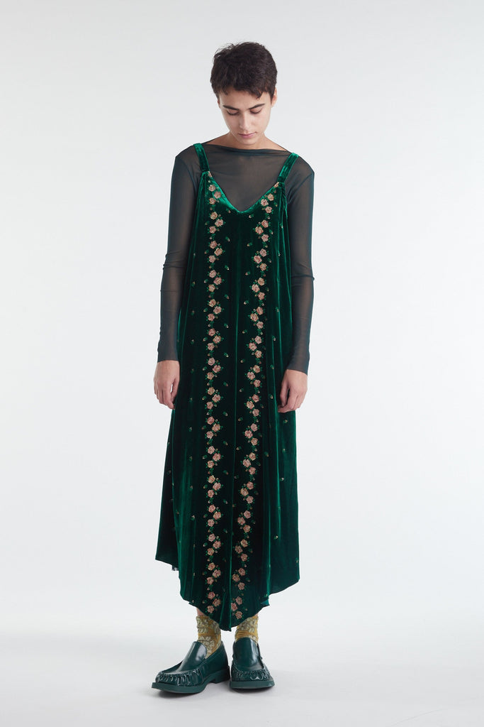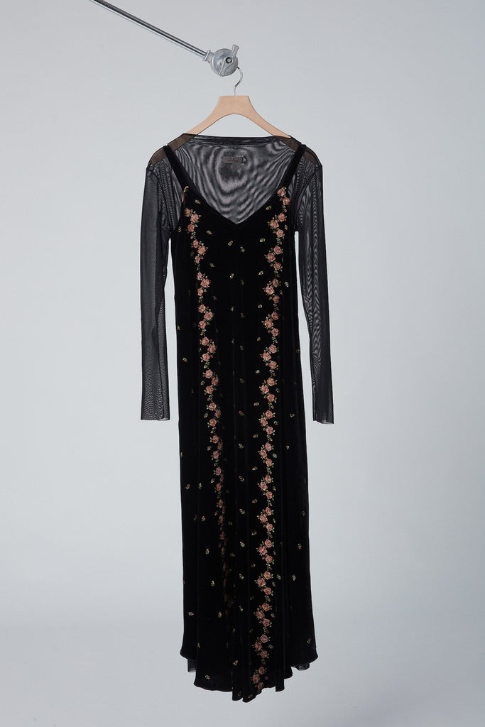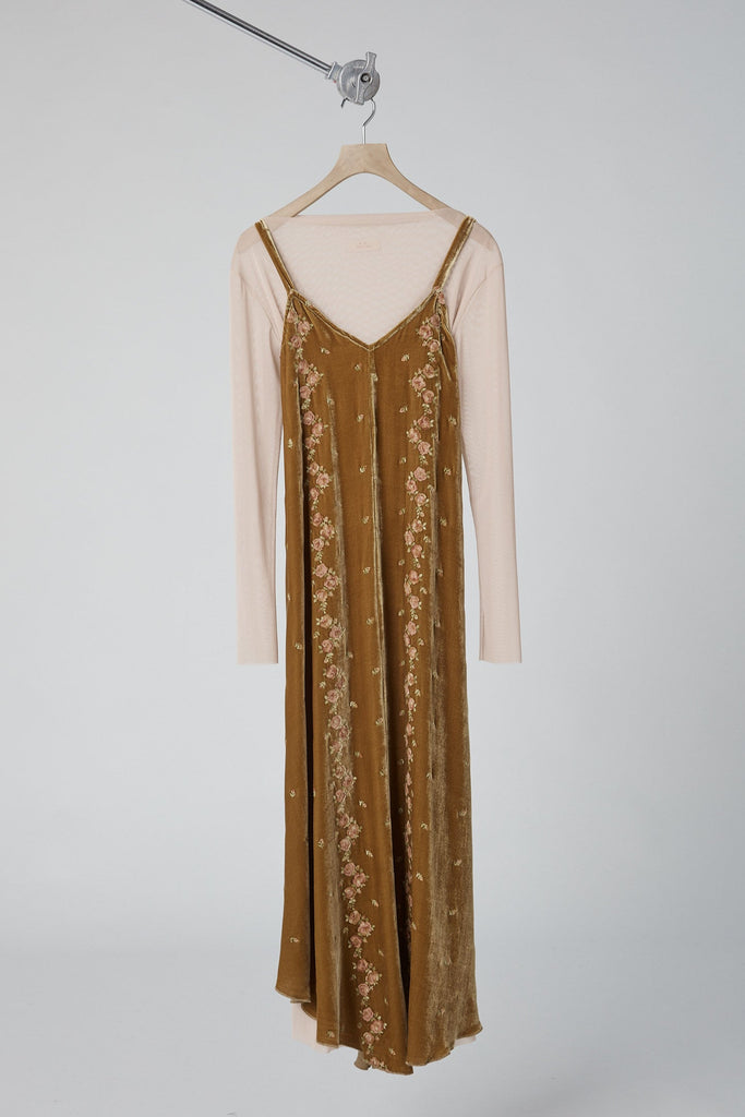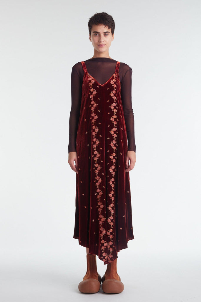 JACKIE Embroidered Velvet Flared Coat / Rust Orange