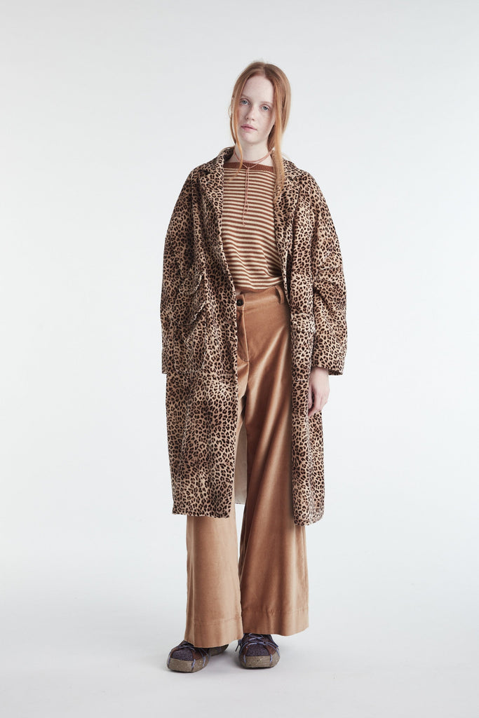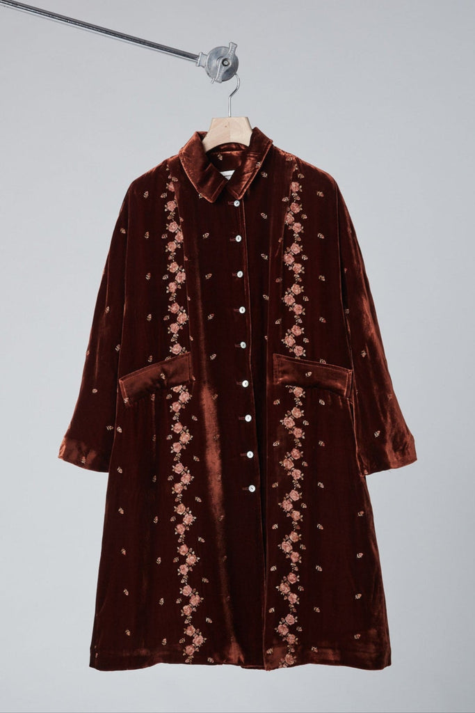 JACKIE Embroidered Velvet Flared Coat / Rust Orange