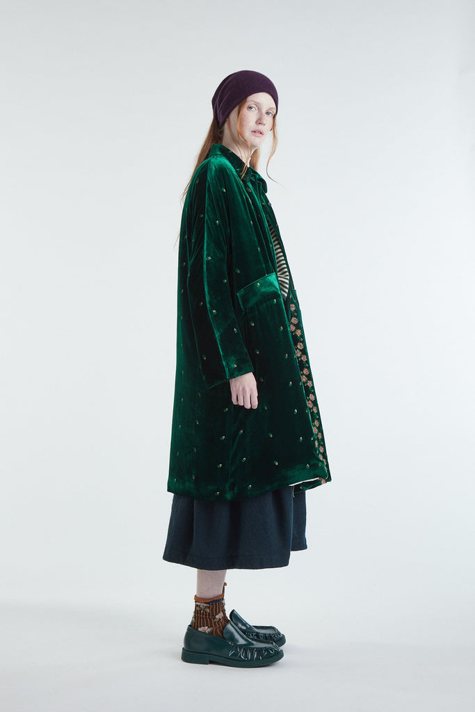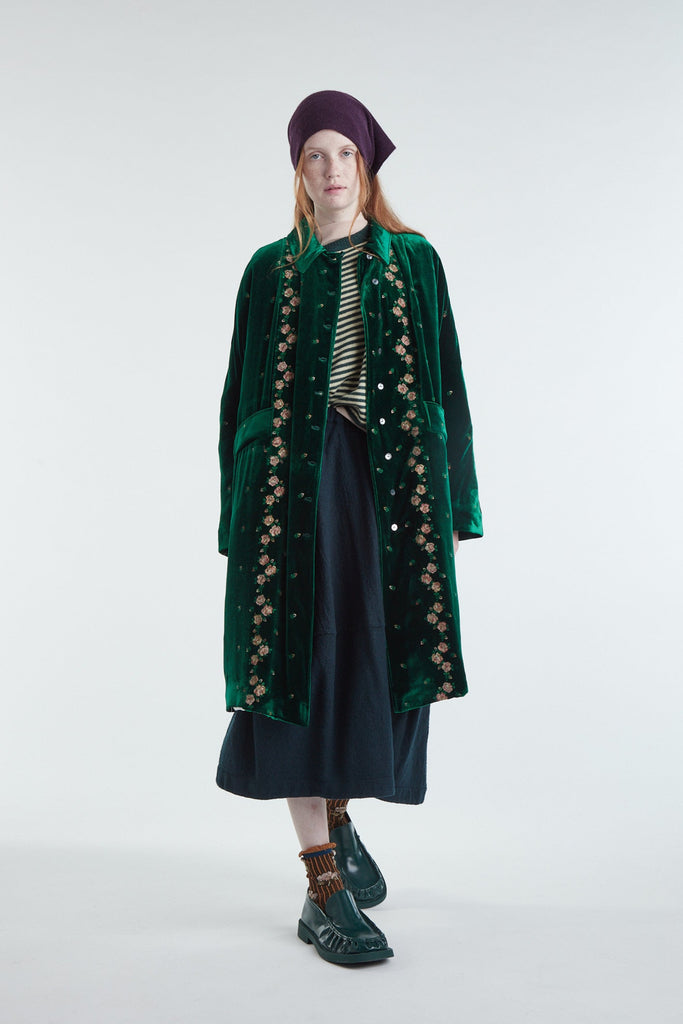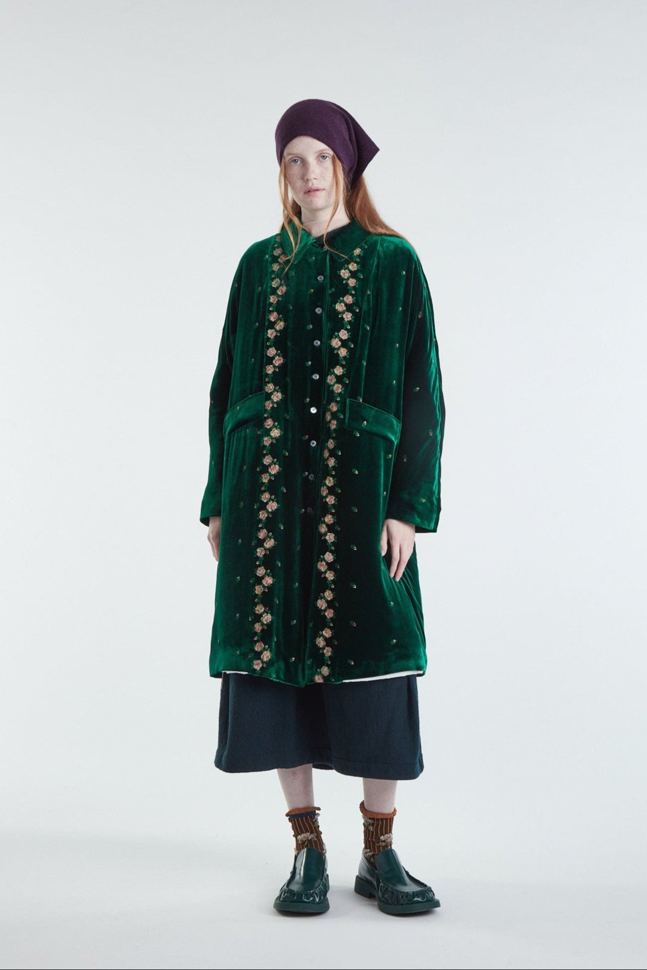 JACKIE Embroidered Velvet Flared Coat / Rust Orange