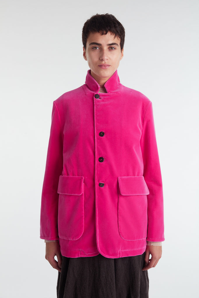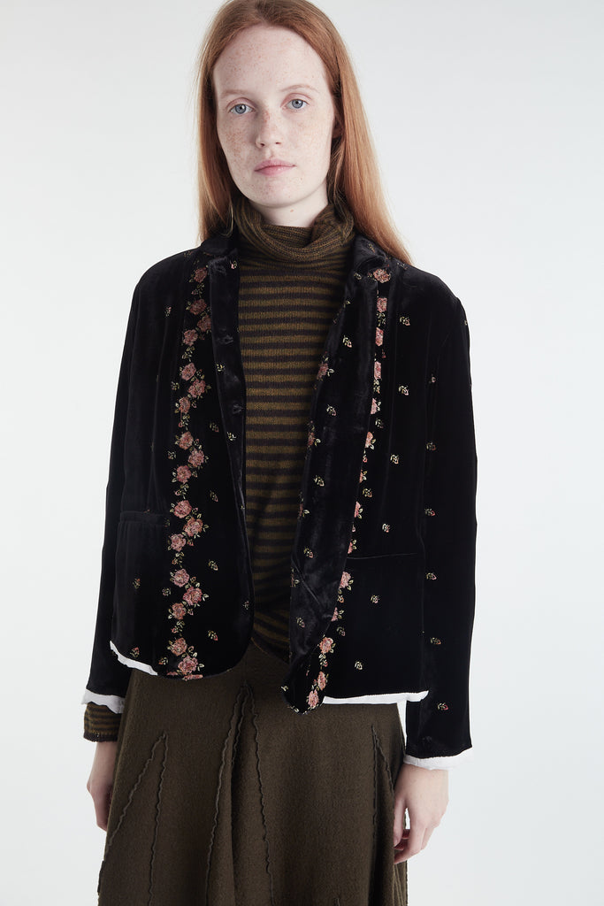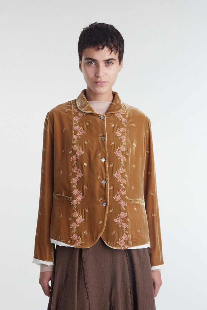 JACKIE Embroidered Velvet Flared Coat / Rust Orange