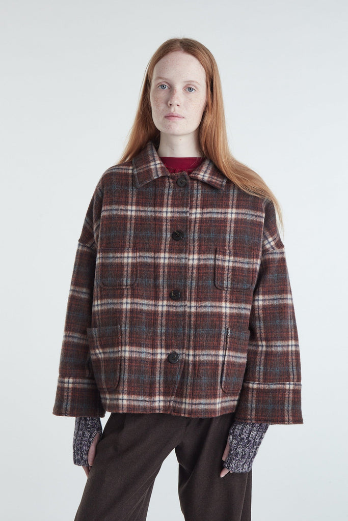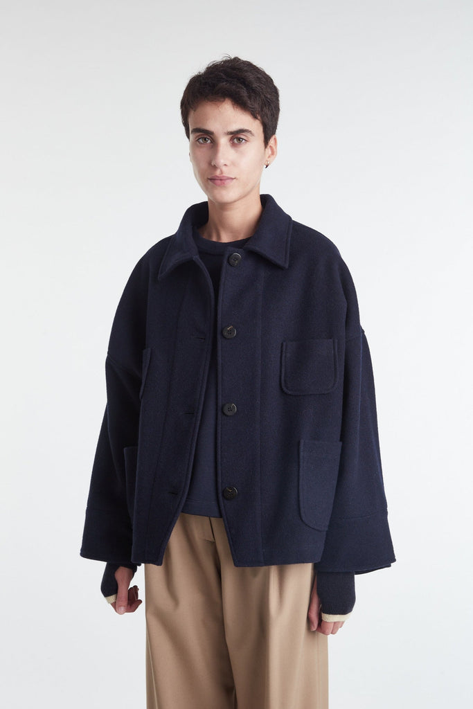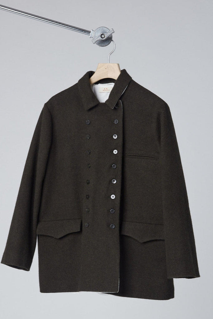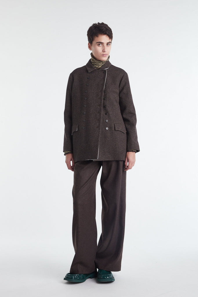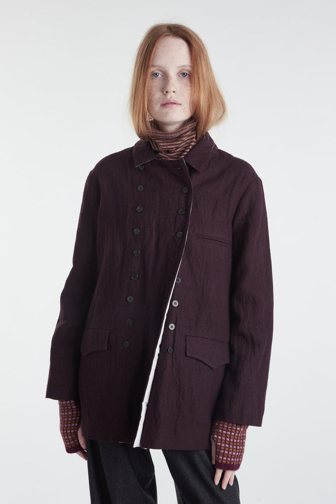 BONNY Double-breasted jacket in wool and cotton gauze / sand