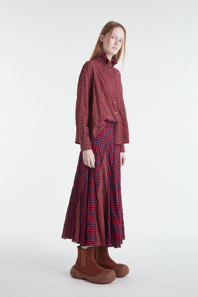 JACKIE Embroidered Velvet Flared Coat / Rust Orange